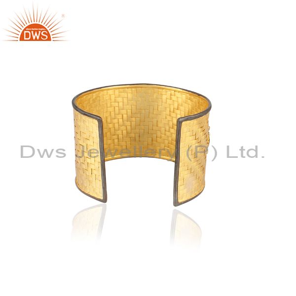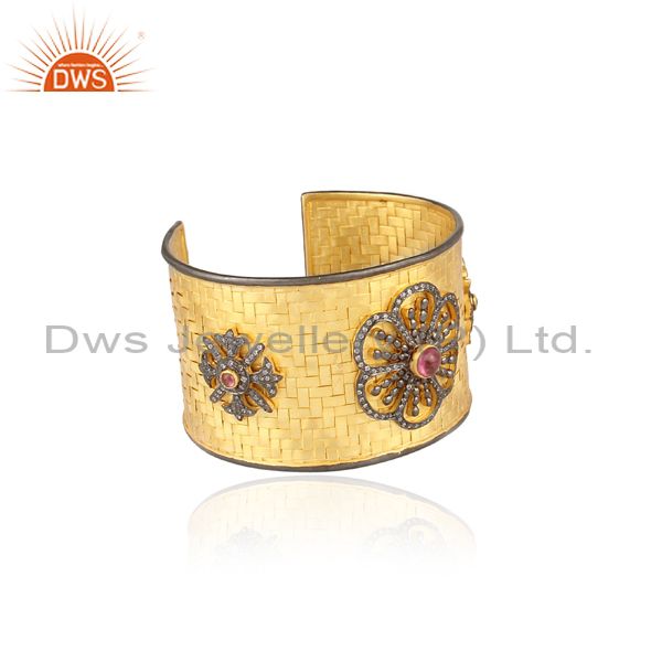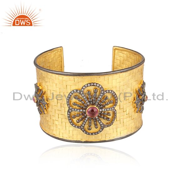 22K Gold Plated Sterling Silver Tourmaline And Cz Designer Woven Cuff Bracelet