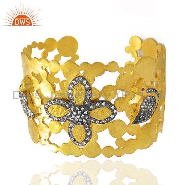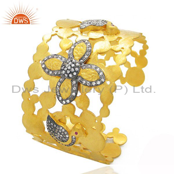 22K Yellow Gold Plated Brass Cz Filigree Bridal Fashion Cuff Bracelet Bangle