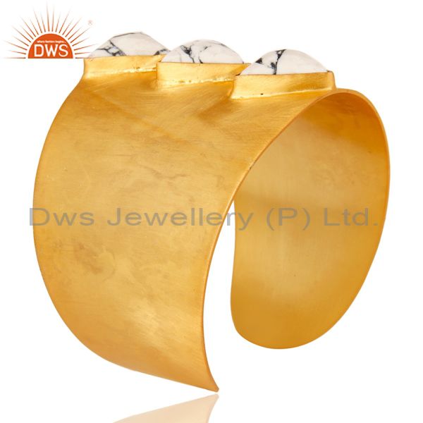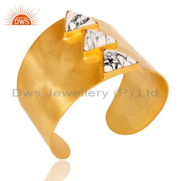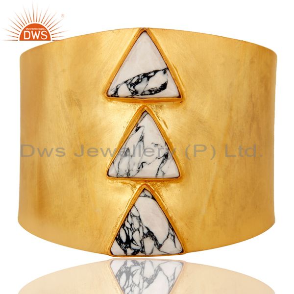 22K Yellow Gold Plated Handmade White Howlite Gemstone Brass Openable Jewellery