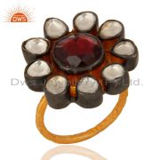 22K Yellow Gold Plated Sterling Silver Crystal Polki And Rhodolite Cuff Bracelet