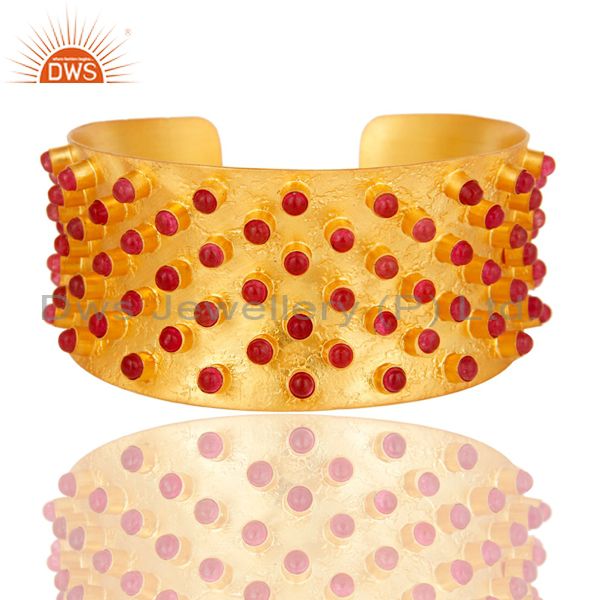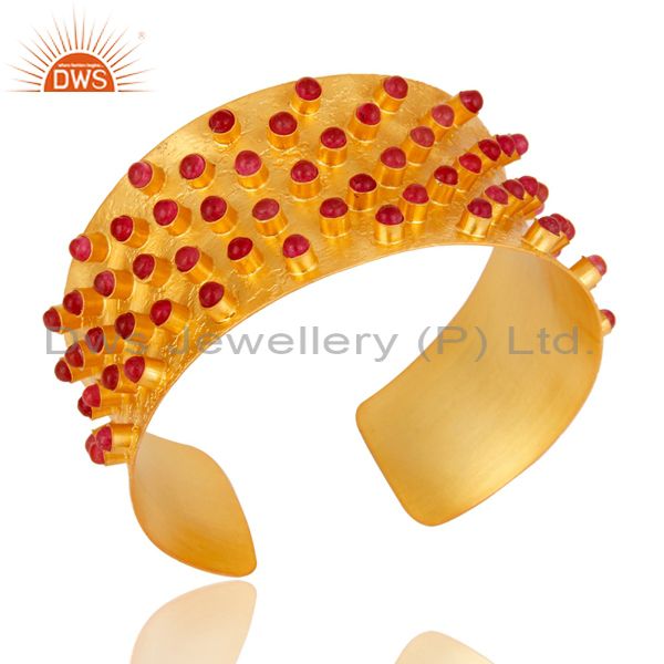 24K Gold Plated Brass Natural Aventurine Fashion Cuff Bracelet Bangle Jewelry