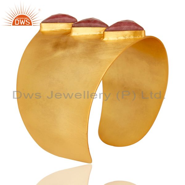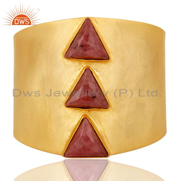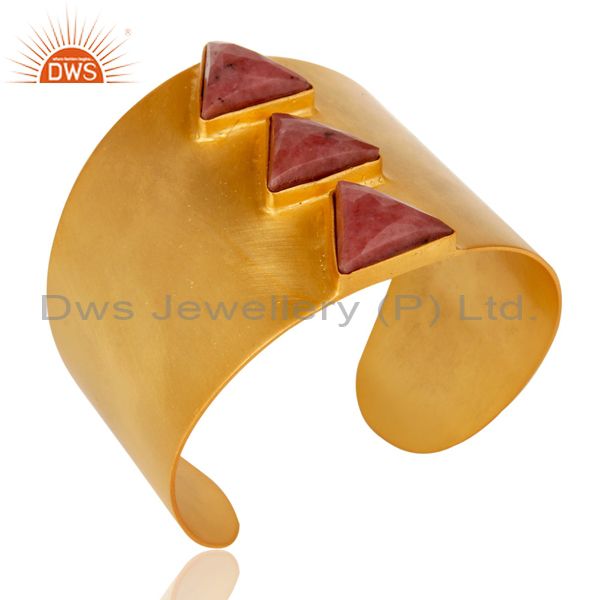 24K Yellow Gold Plated Handmade Rhodonite Gemstone Brass Openable Jewellery