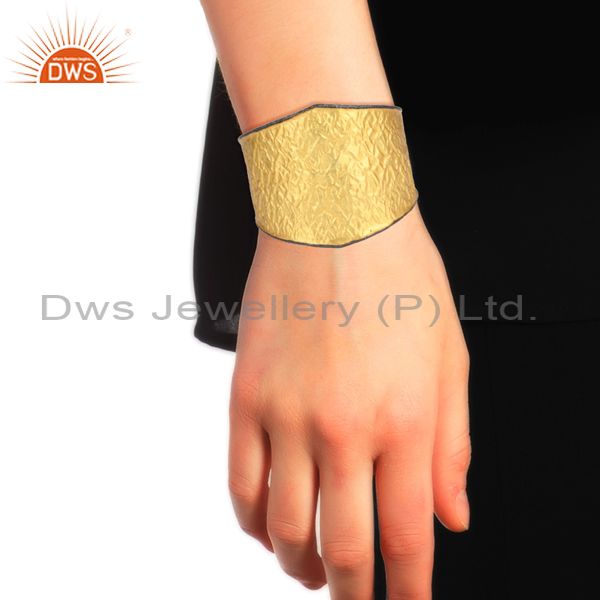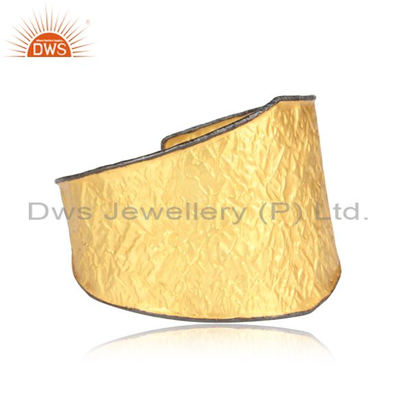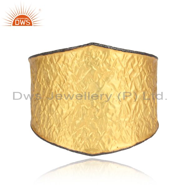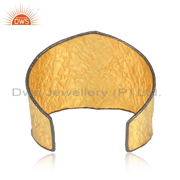 24K Yellow Gold Plated Sterling Silver Hammered Designer Wide Cuff Bracelet