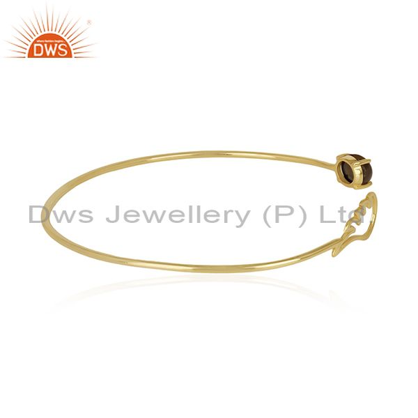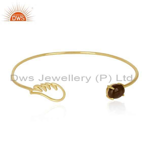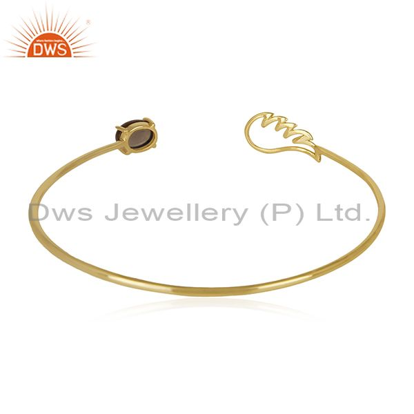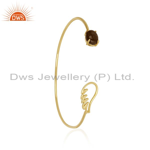Angle Wing 14k Gold Plated 925 Silver Smoky Quartz Cuff Bracelet Manufacturer
