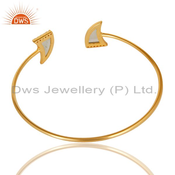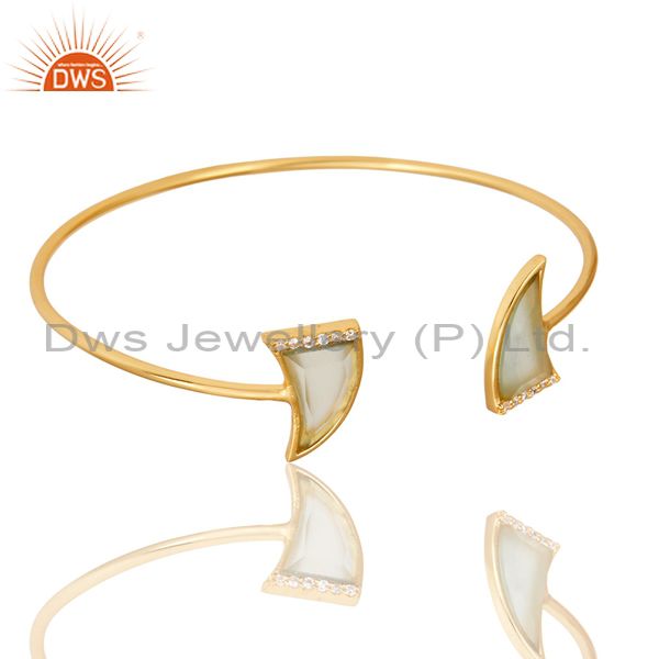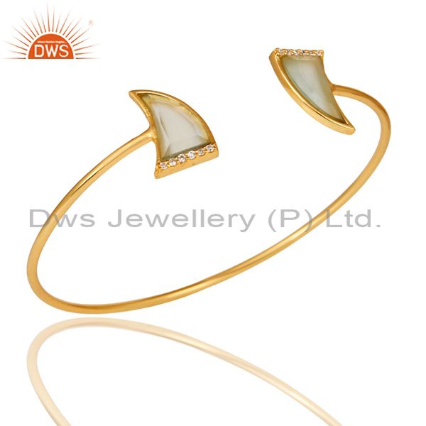 Aqua Chalcedony CZ Sleek 14K Gold Plated 925 Sterling Silver Cuff Bangle Jewelry