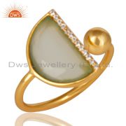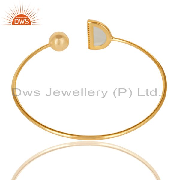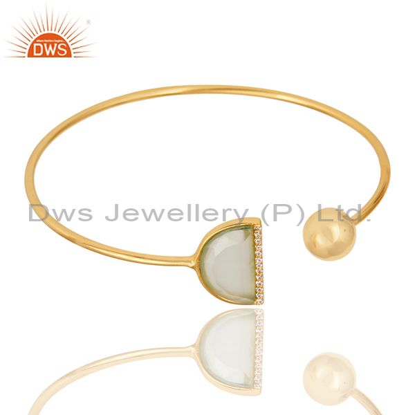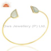Aqua Chalcedony Cz Sleek 14K Gold Plated Sterling Silver Cuff Bangle Jewelry