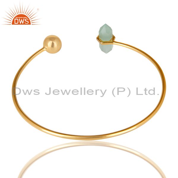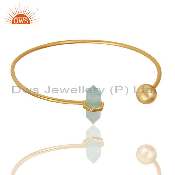 Aqua Chalcedony Double Terminated Pencil Point Gold Plated Silver Bangle