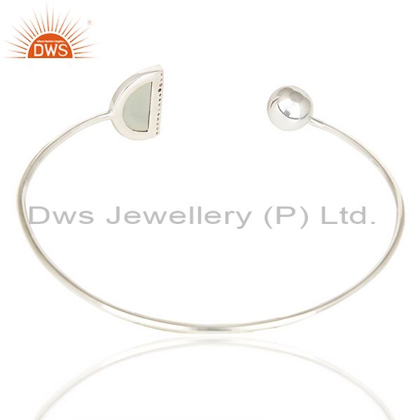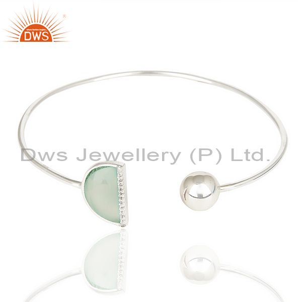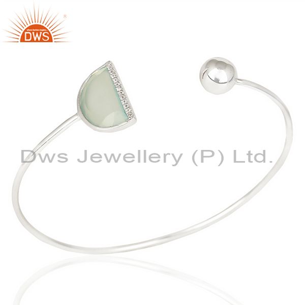 Aqua Chalcedony Half Moon Bangle In Solid 92.5 Sterling Silver Adjustable Bangle