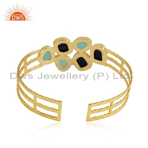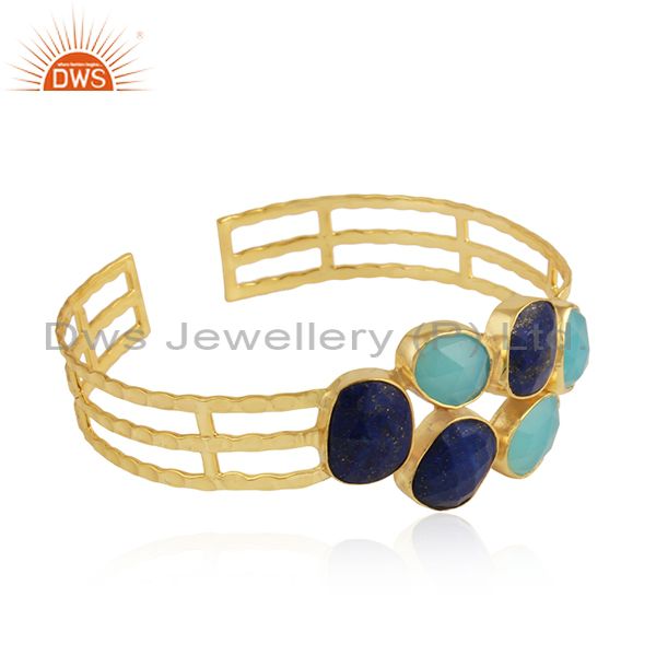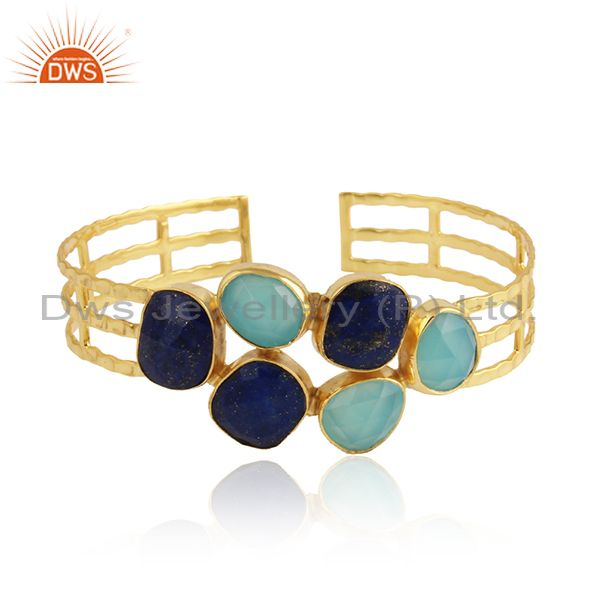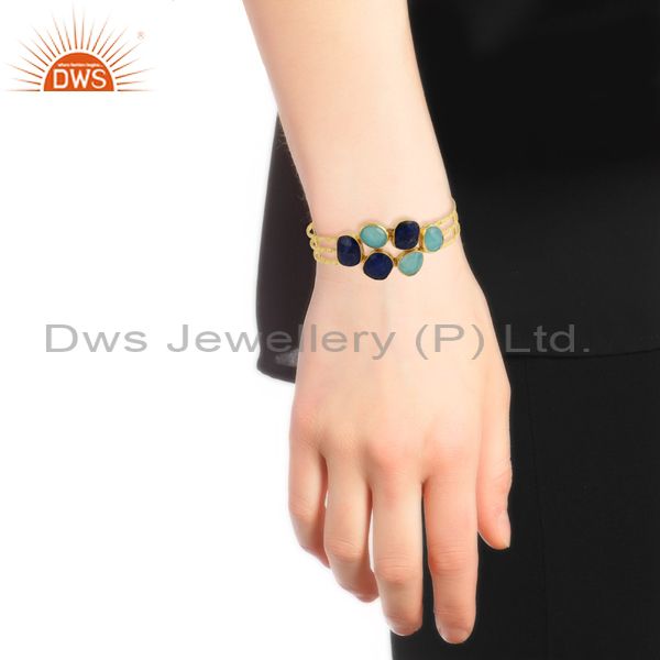 Aqua Chalcedony Lapis Gemstone Gold Plated Silver Bangles Jewelry