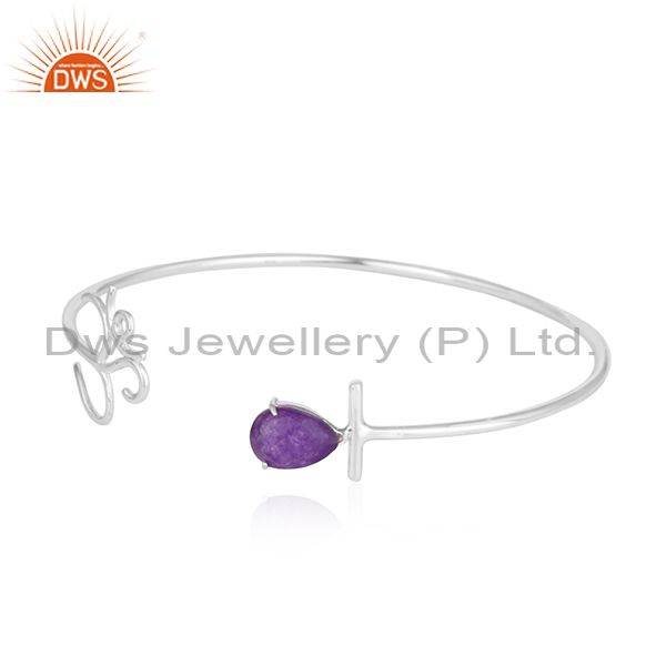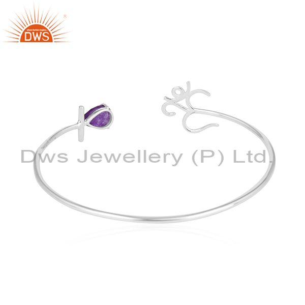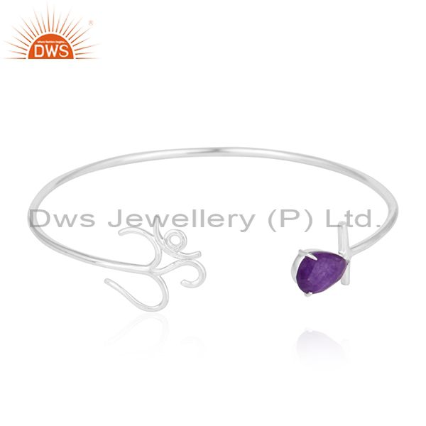 Aventurine 925 Sterling Fine Silver Om Charm Cuff Bracelet Jewelry