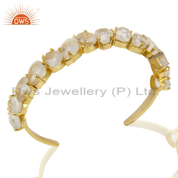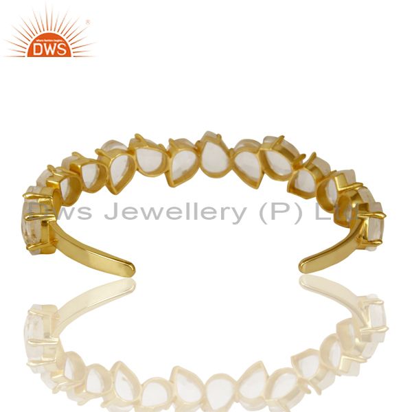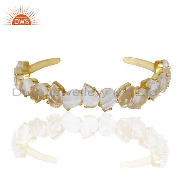 Beautiful 14K Gold Plated Prong Set Crystal Quartz Cuff Bracelet Made In Brass