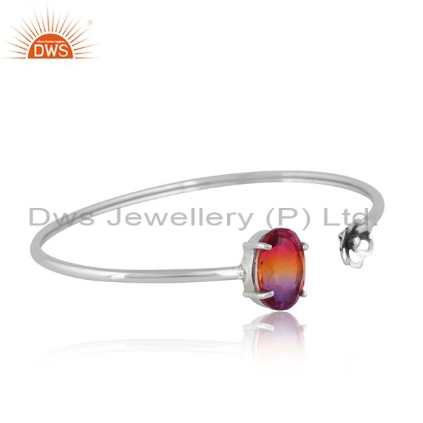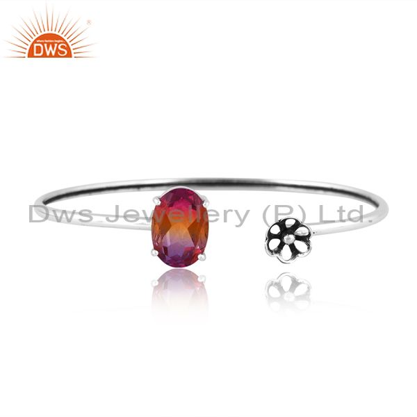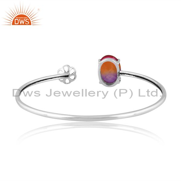 Bio Ametrine Doublet Quartz Set Oxidized 925 Silver Cuff