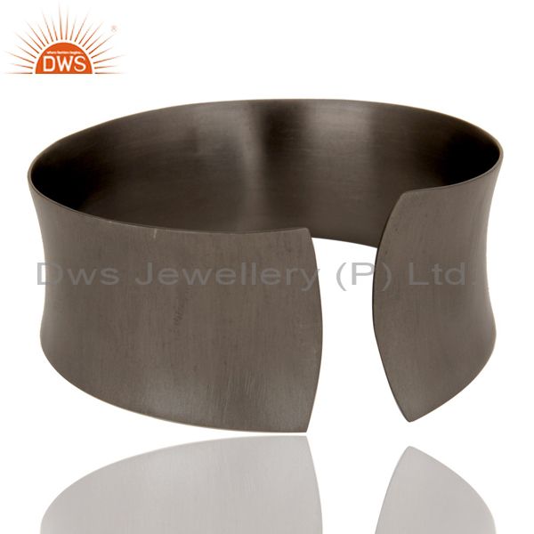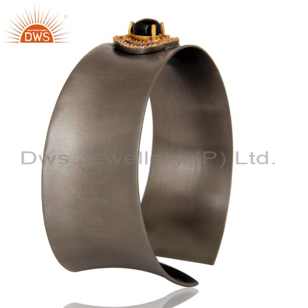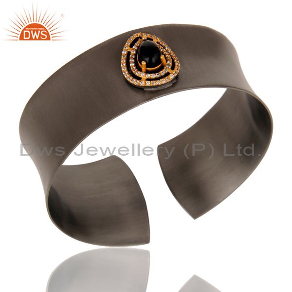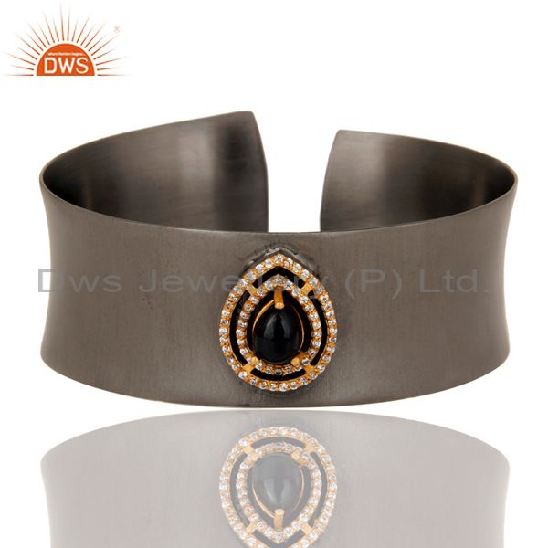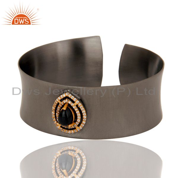 Black Onyx and Zircon Black Oxidized Comfort Fit Wide Cuff Unique Piece of Art