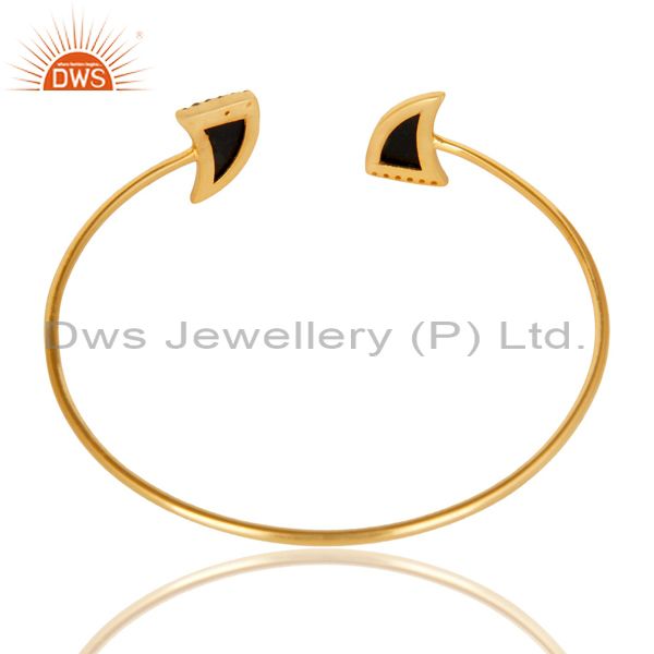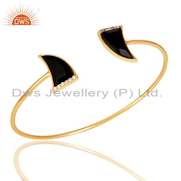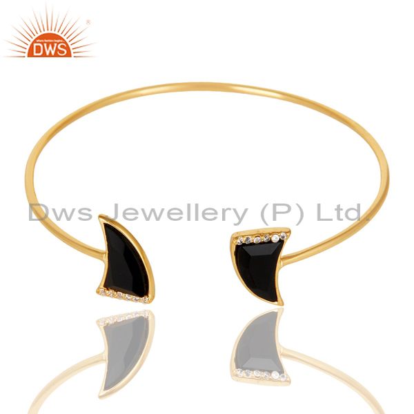 Black Onyx CZ Sleek 14K Gold Plated 925 Sterling Silver Cuff Bangle Jewelry