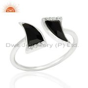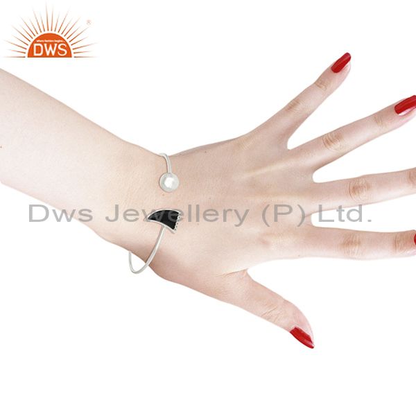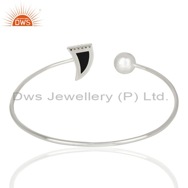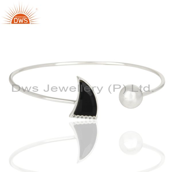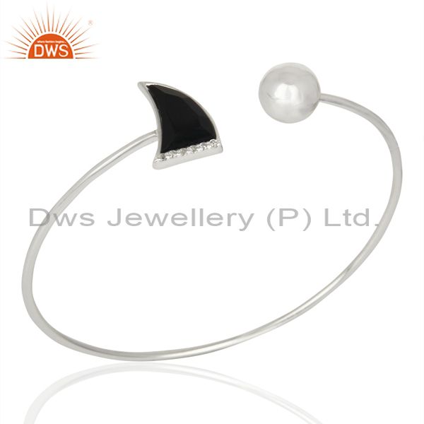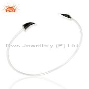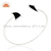 Black Onyx CZ Sleek 925 Sterling Silver Cuff Bangle Gemstone Jewelry