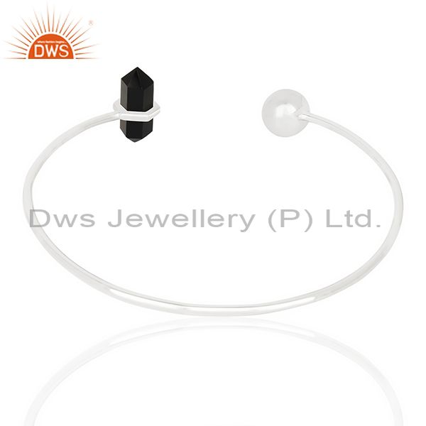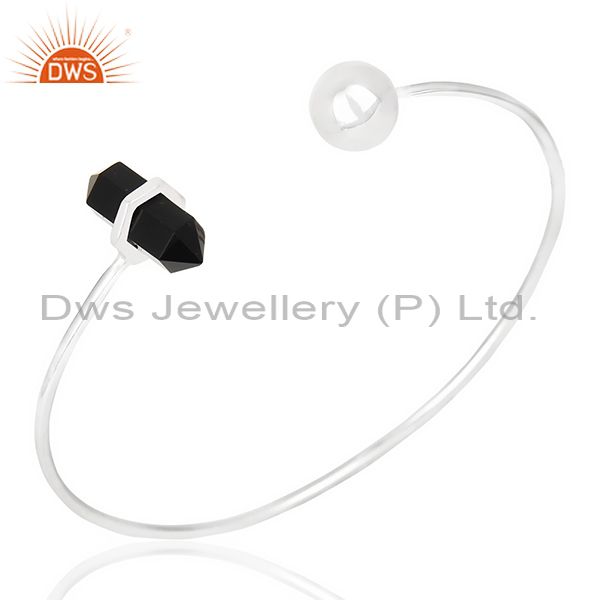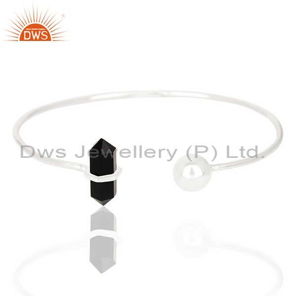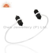 Black Onyx Double Terminated Pencil Point Openable Sterling Silver Bangle