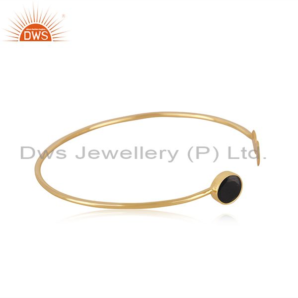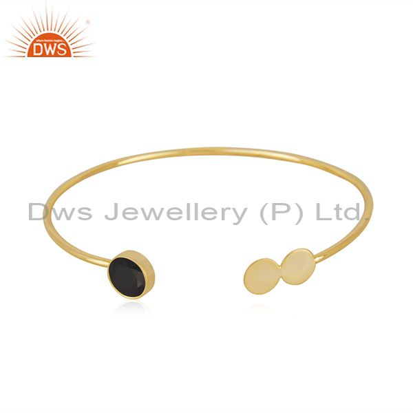 Black Onyx Gemstone 925 Silver Gold Plated Black Onyx Gemstone Cuff Bracelet