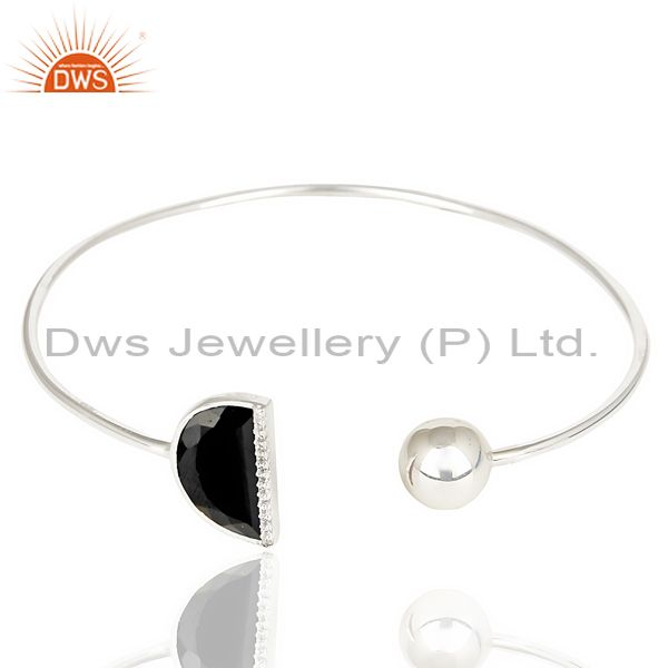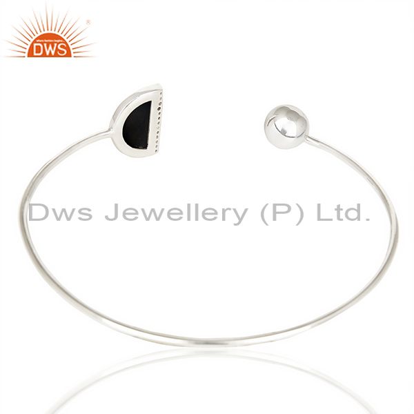 Black Onyx Half Moon Openable Bangle Fashionable Bangle In 92.5 Sterling Silver