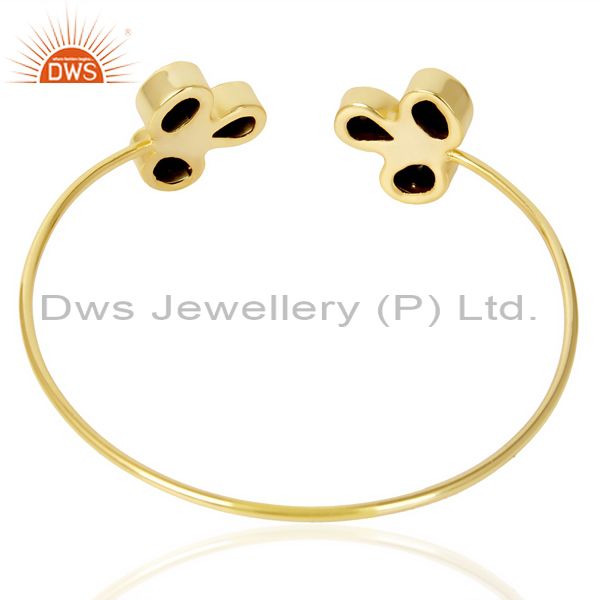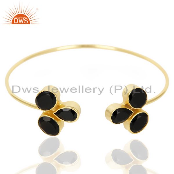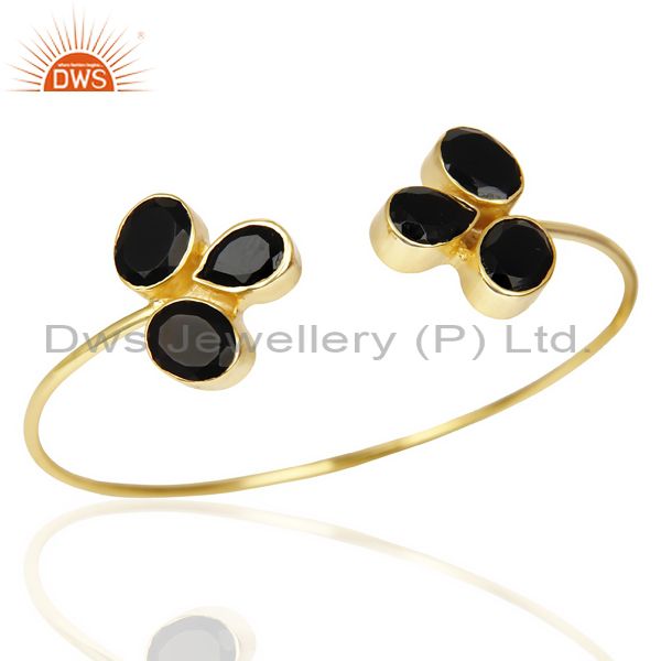 Black Onyx Sleek 14K Yellow Gold Plated Cuff Bangle Bracelet Brass Jewelry