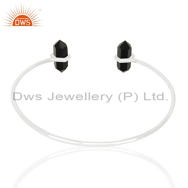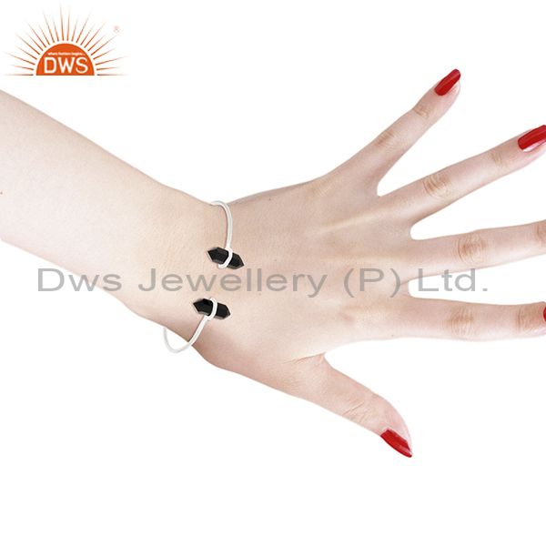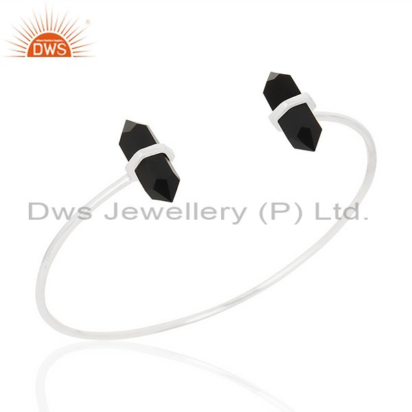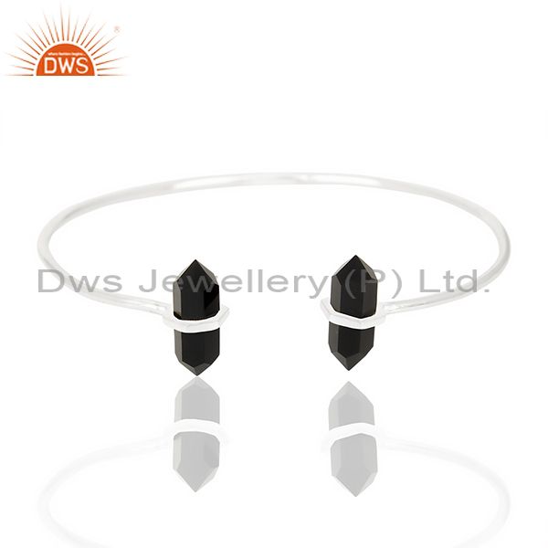 Black Onyx Terminated Pencil Point Openable 92.5 Sterling Silver Bangle