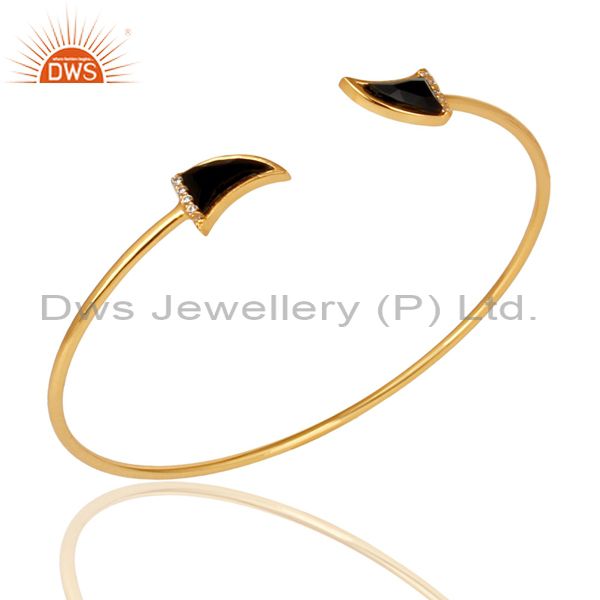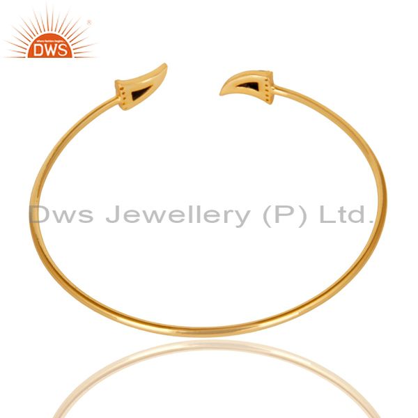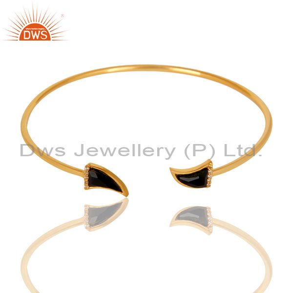 Black Onyx Tooth Unisex Gold Plated Sterling Silver Openable Bangle