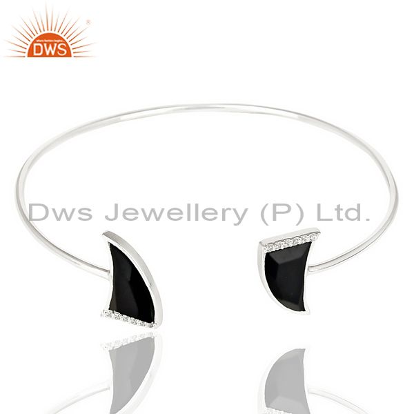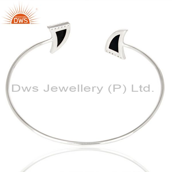 Black Onyx Two Horn Studded Bangle In Solid 92.5 Sterling Silver