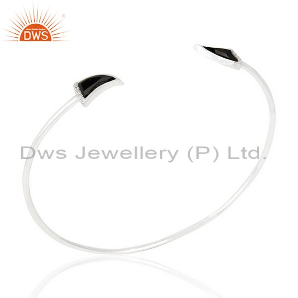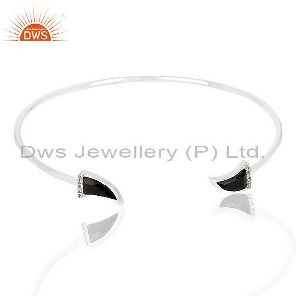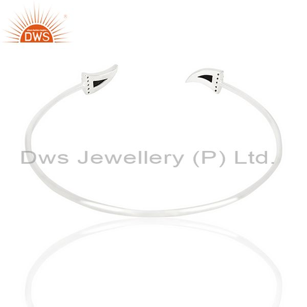 Black Onyx Unisex Tooth Horn Openable Adjustable Sterling Silver Bangle