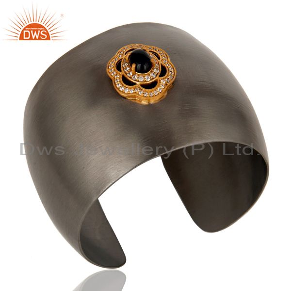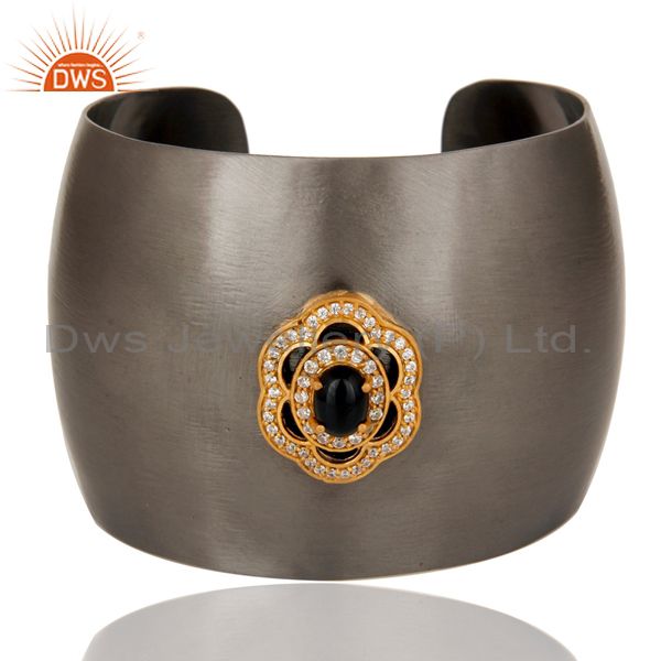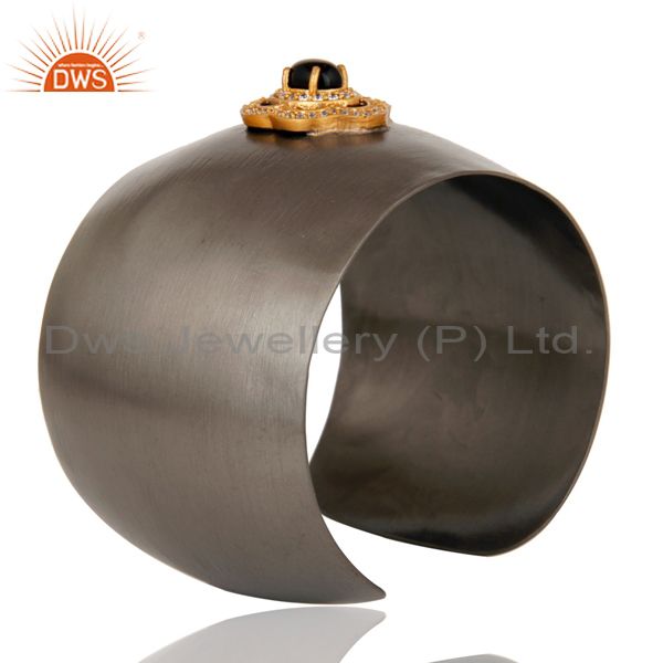 Black Oxidized Black Onyx and CZ Wide Cuff Handmade Fashion Jewelry Bangle