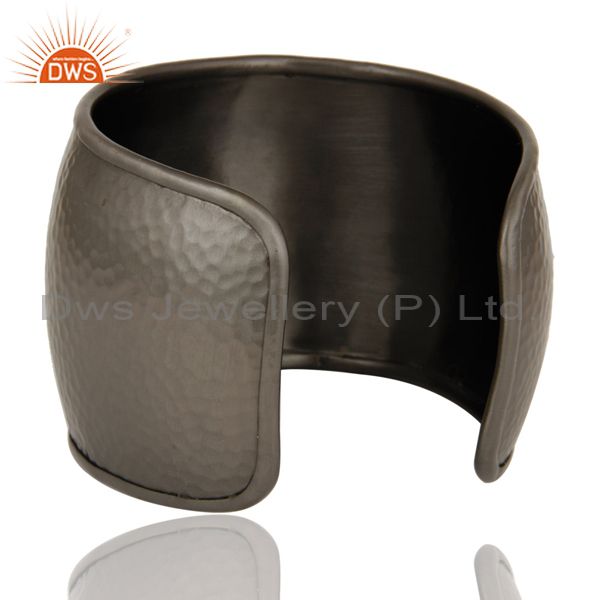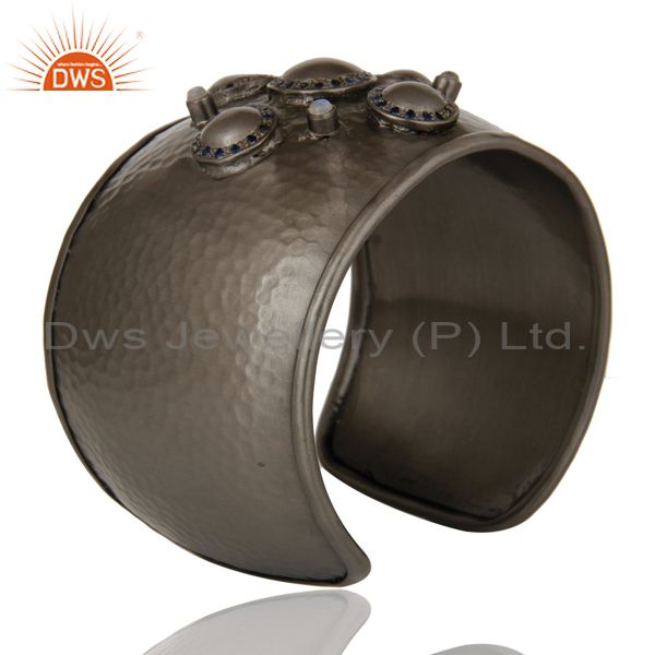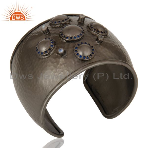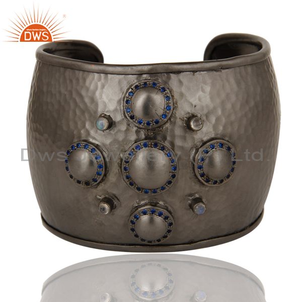 Black Oxidized with Rainbow Moonstone And Zircon Brass Cuff Bracelet