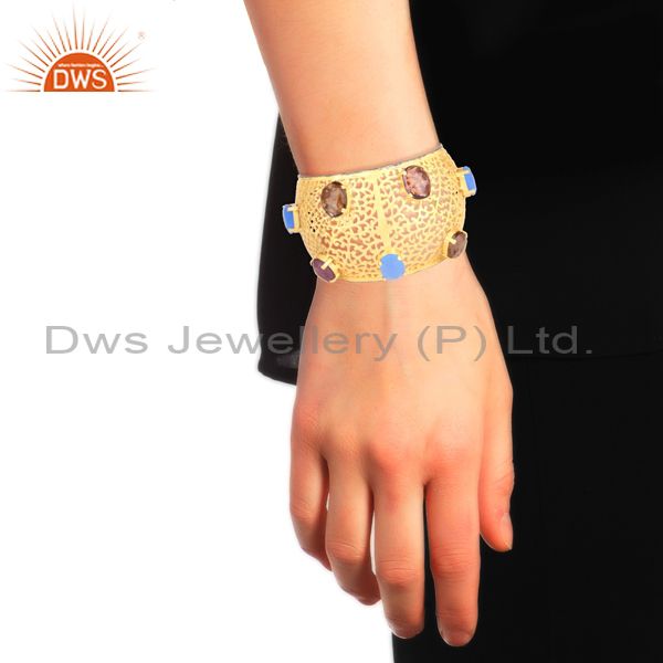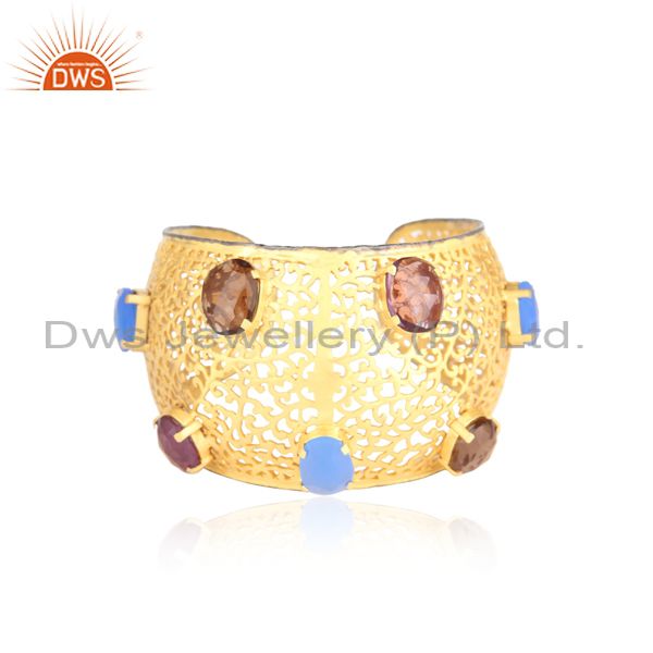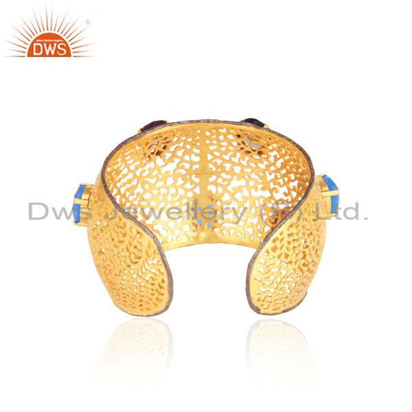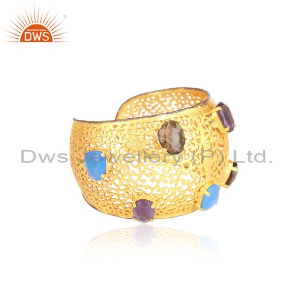 Bold Filigree Cuff in Yellow Gold on Silver with Multi Gemstones
