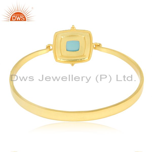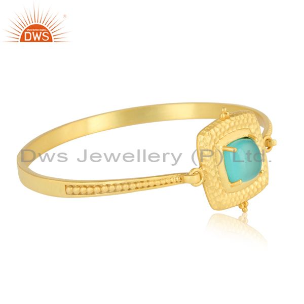 Bold Hammered Fashion Cuff With Gold On And Aqua Chalcedony