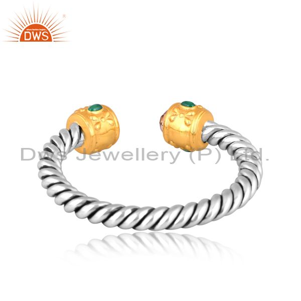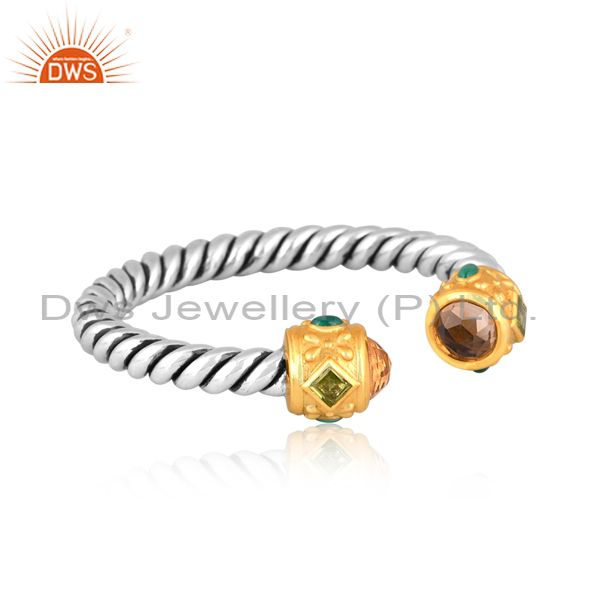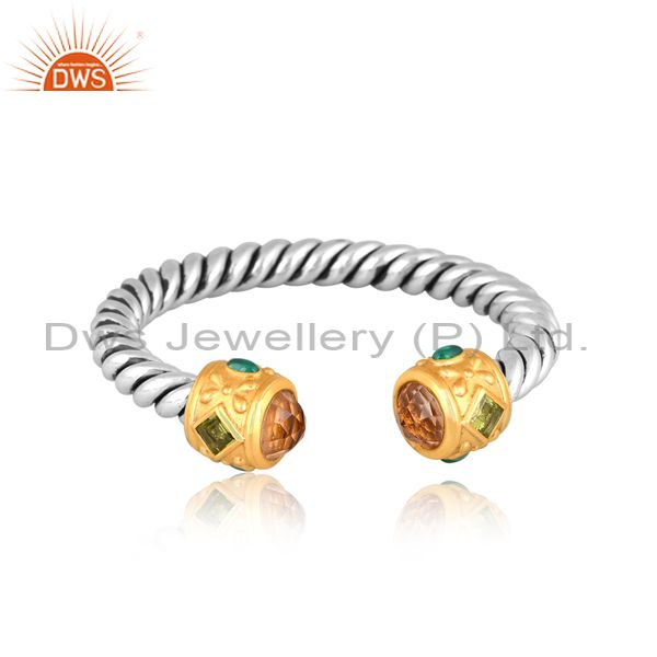Citrine, Peridot, Black Onyx Set Fine 925 Silver Twist Cuff