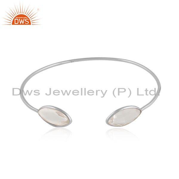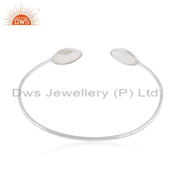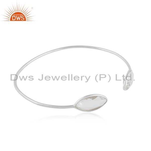 Crystal Quartz Gemstone Designer Sterling Fine Silver Cuff Bangle