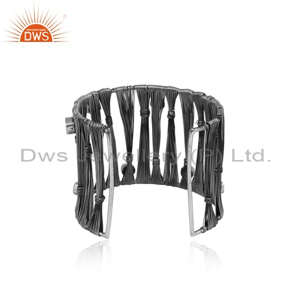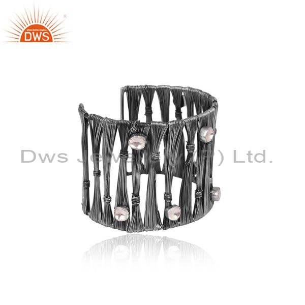Crystal Quartz Set Oxidized Sterling Silver Dandelion Cuff