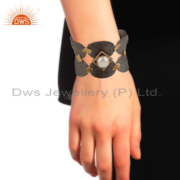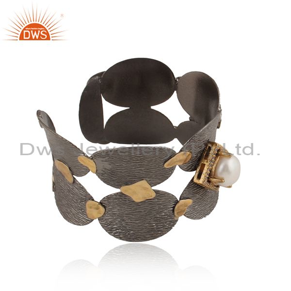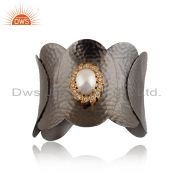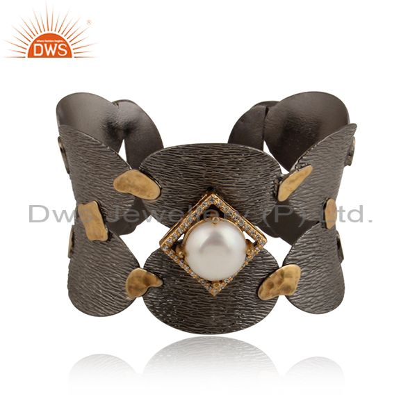Cubic Zirconia And Pearl Silver Rhodium Plated Plated Cuff