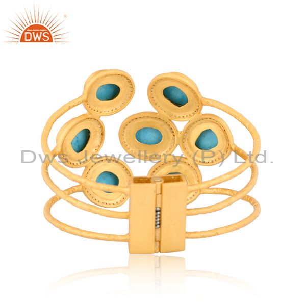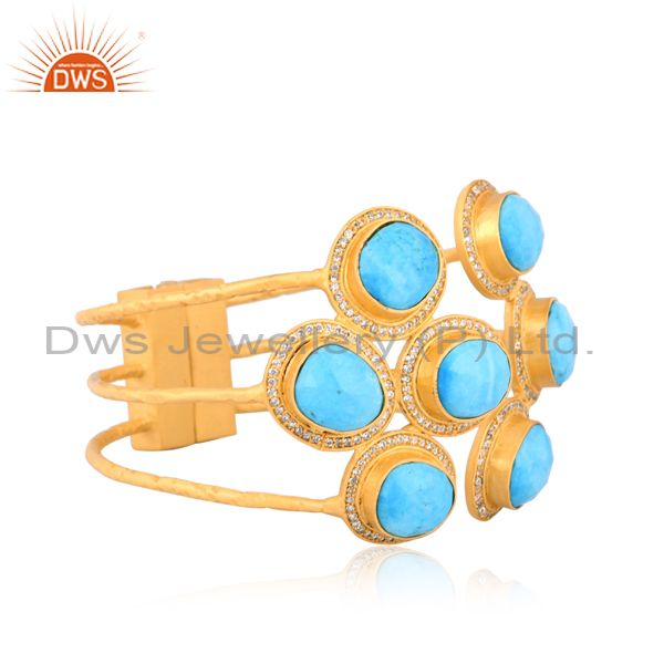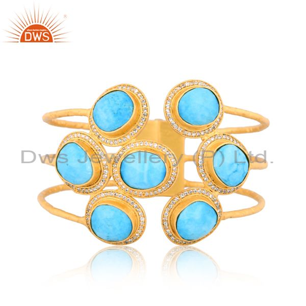 Cz And Turquoise Set 18K Gold On Brass Fancy Abstract Ring