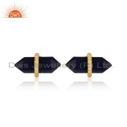 CZ Blue Corundum Gemstone Handmade Gold Plated Silver Cuff Bangle