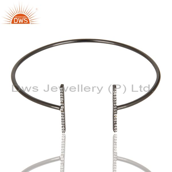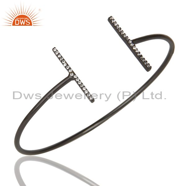 Cz Studded Parallel Bar Bangle Black Rhodium Plated Sterling Silver Bangle