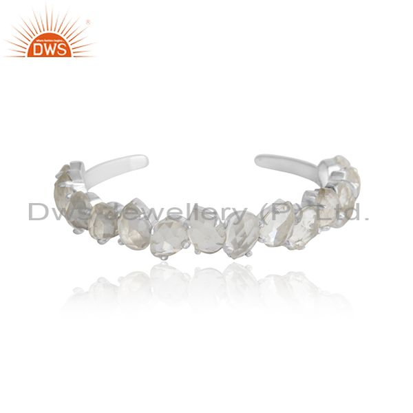 Designer 925 Silver Cuff With Crystal Quartz