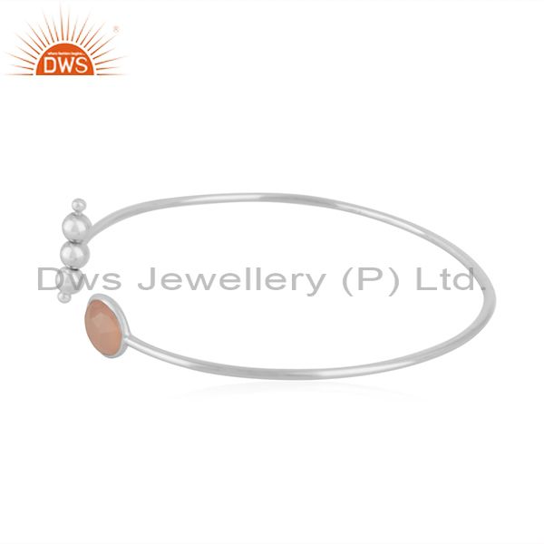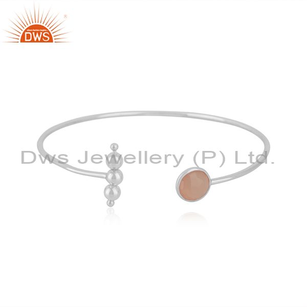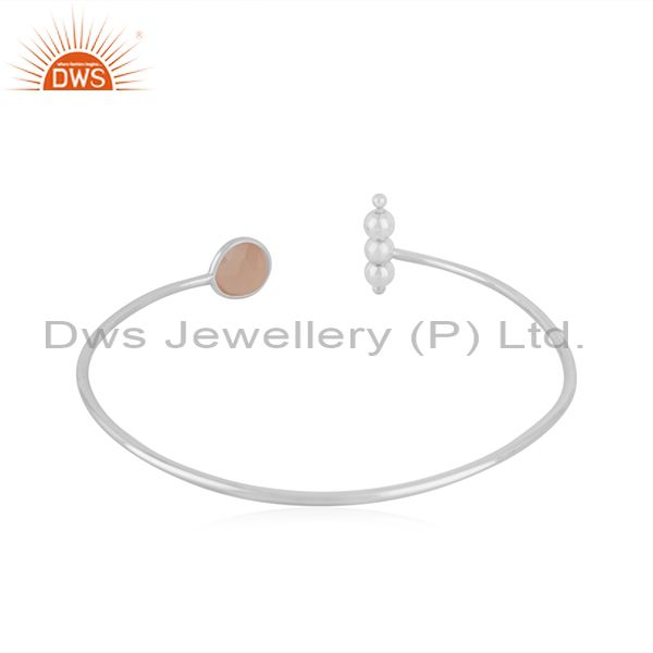Designer 925 Sterling Silver Rose Chalcedony Gemstone Cuff Bracelet Manufacturer