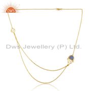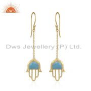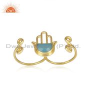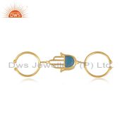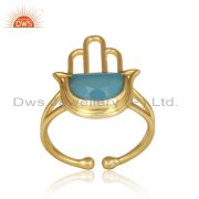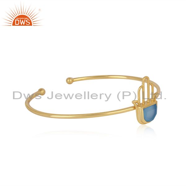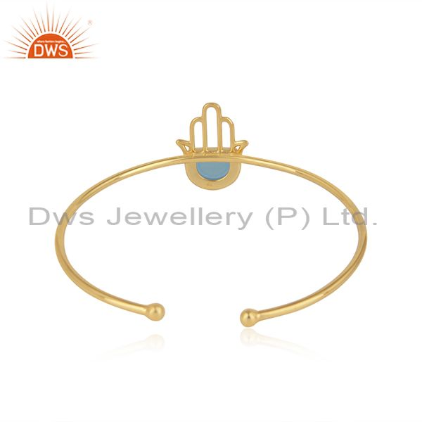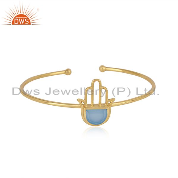 Designer Hamsa Cuff in Yellow Gold on Silver with Blue Chalcedony