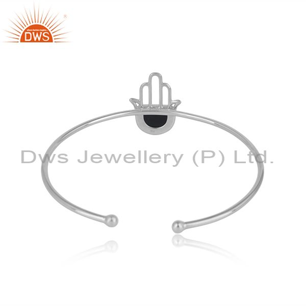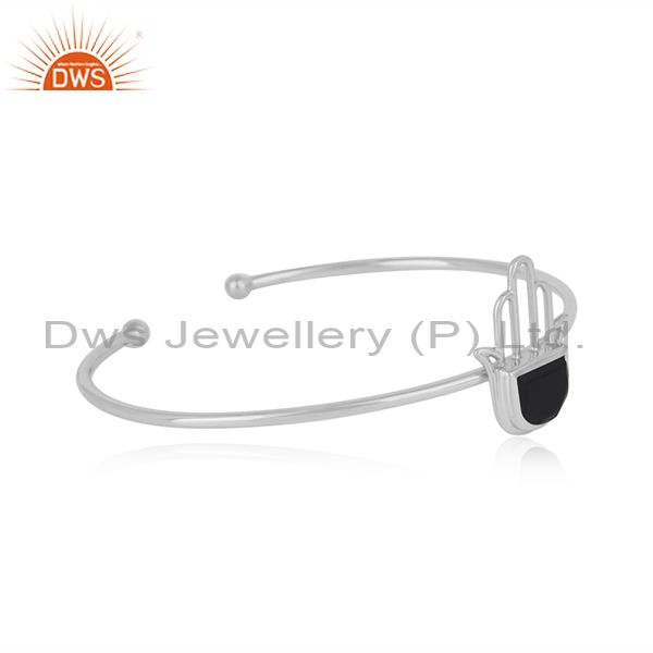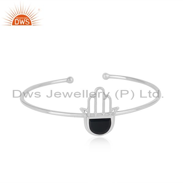 Designer Hamsa Hand Cuff In Sterling Silver 925 With Black Onyx