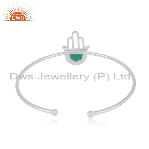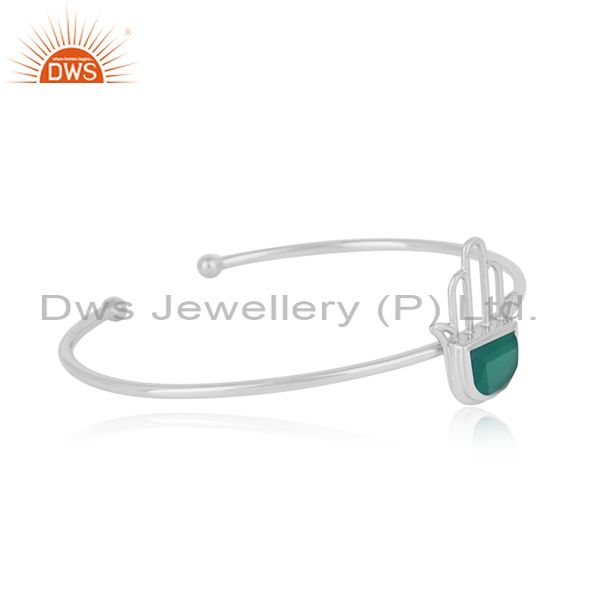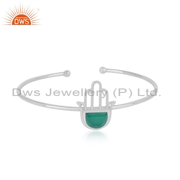 Designer Hamsa Hand Cuff in Sterling Silver 925 with Green Onyx