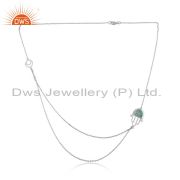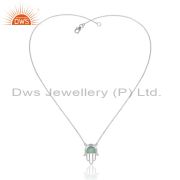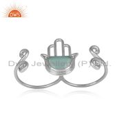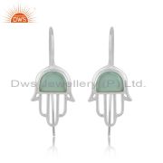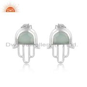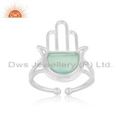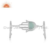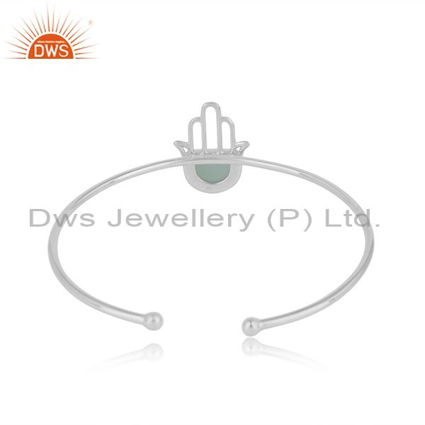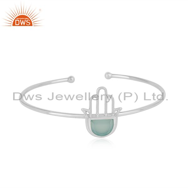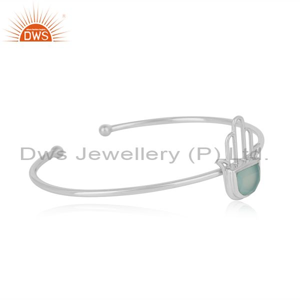 Designer Hamsa Hand Cuff In Sterling Silver With Aqua Chalcedony