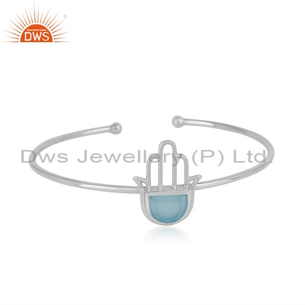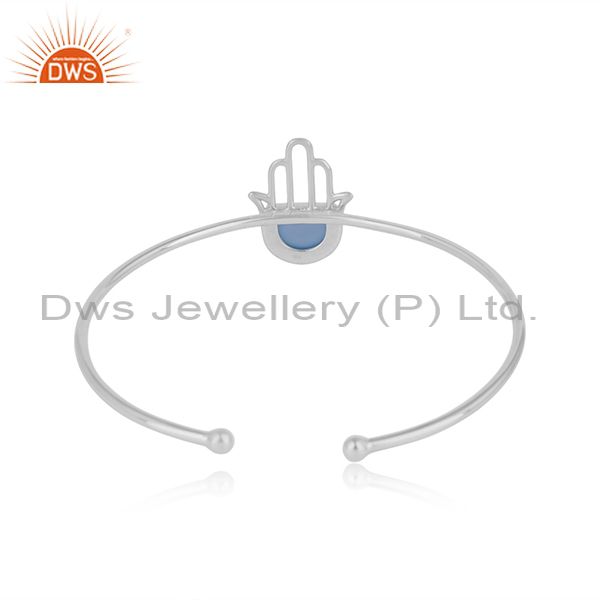 Designer Hamsa Hand Cuff in Sterling Silver with Blue Chalcedony