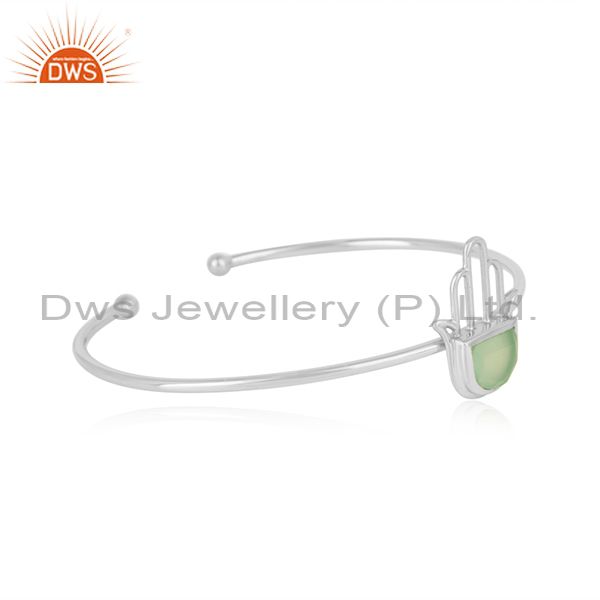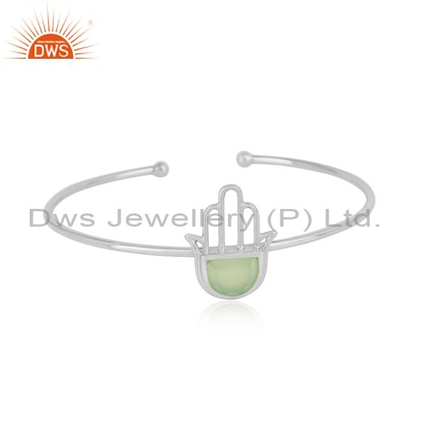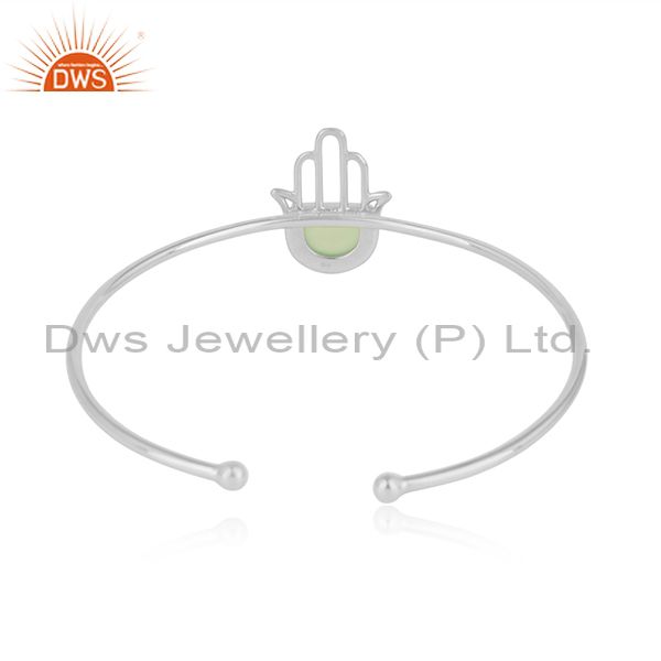 Designer Hamsa Hand Cuff in Sterling Silver with Prehnite Chalcedony