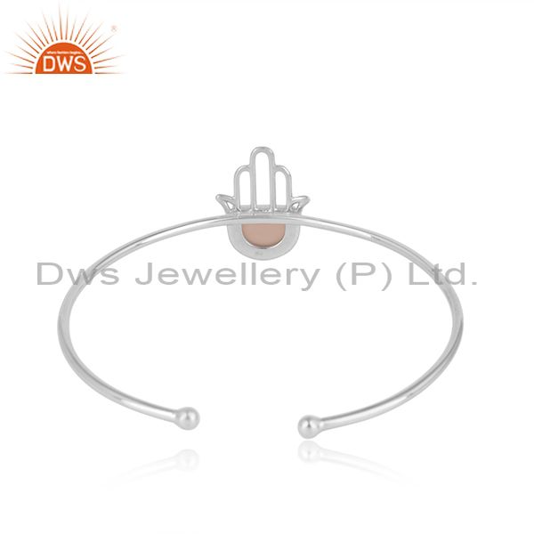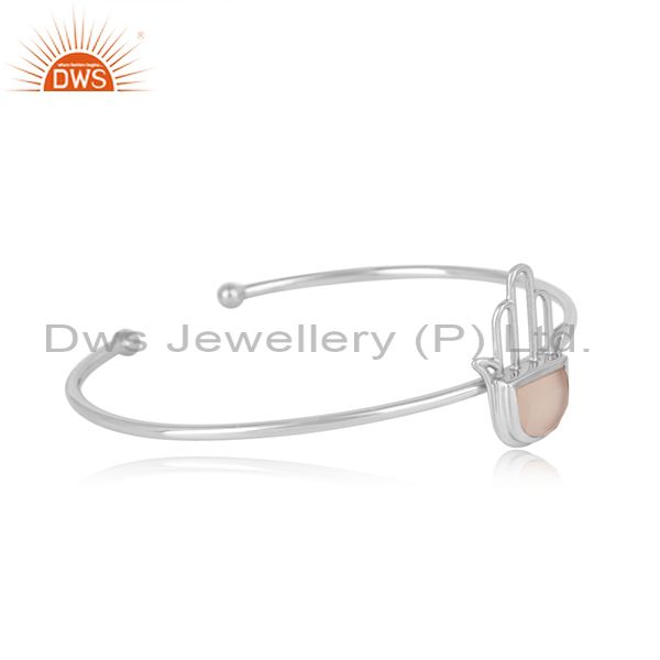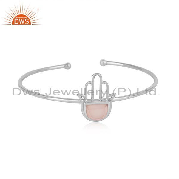 Designer Hamsa Hand Cuff in Sterling Silver with Rose Chalcedony