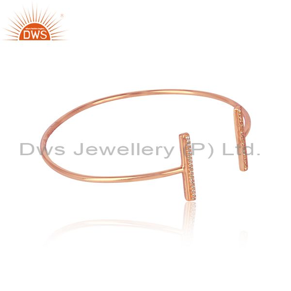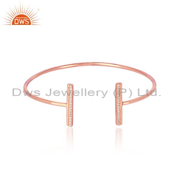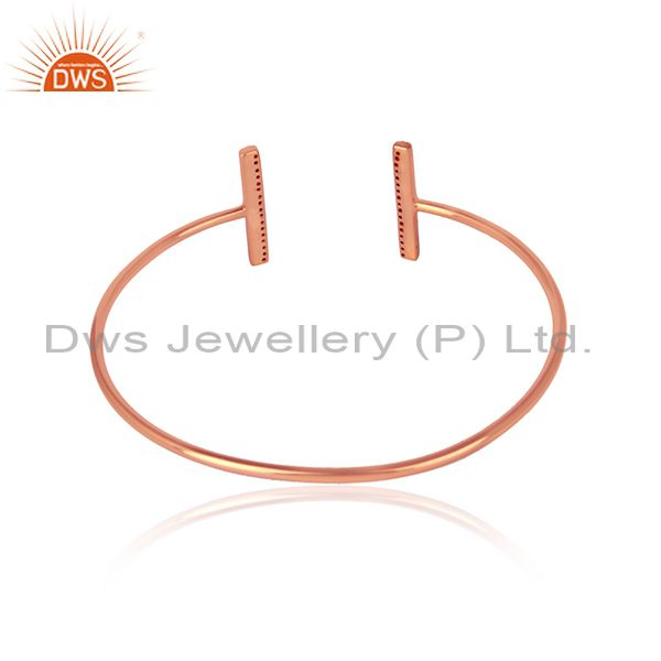 Designer Pave Bar Cuff In Rose Gold Over Silver 925 With Cz