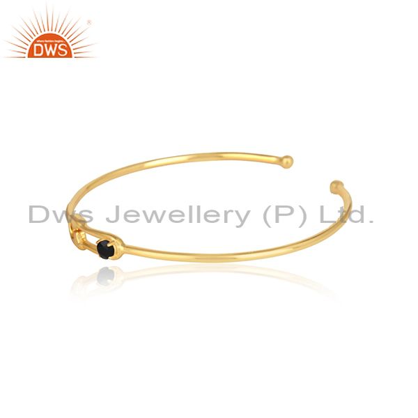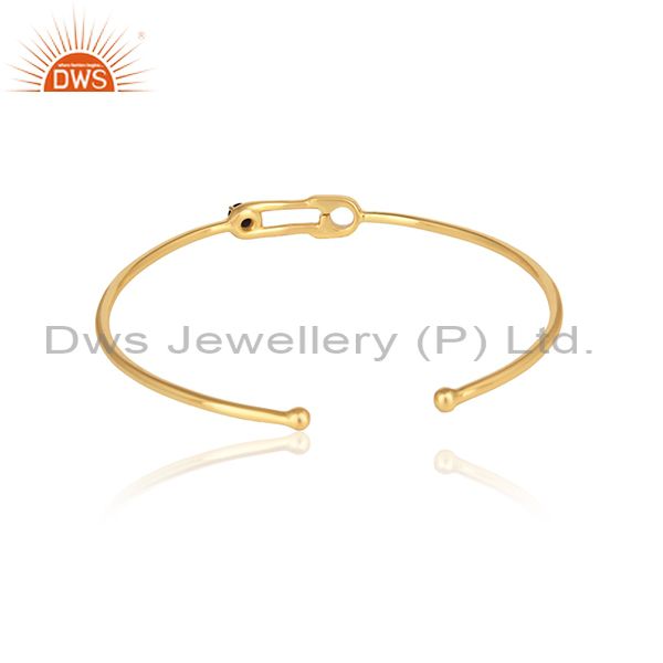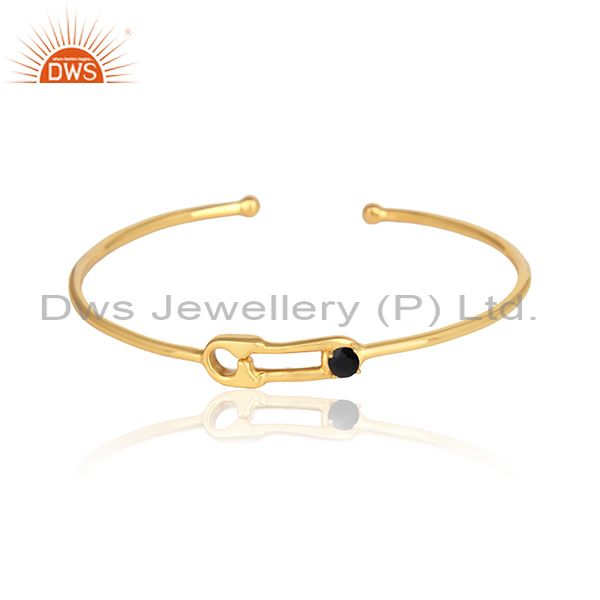Designer Safety Pin Cuff in Silver Yellow gold On with Black Onyx