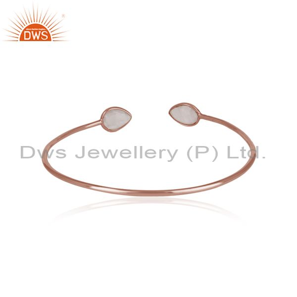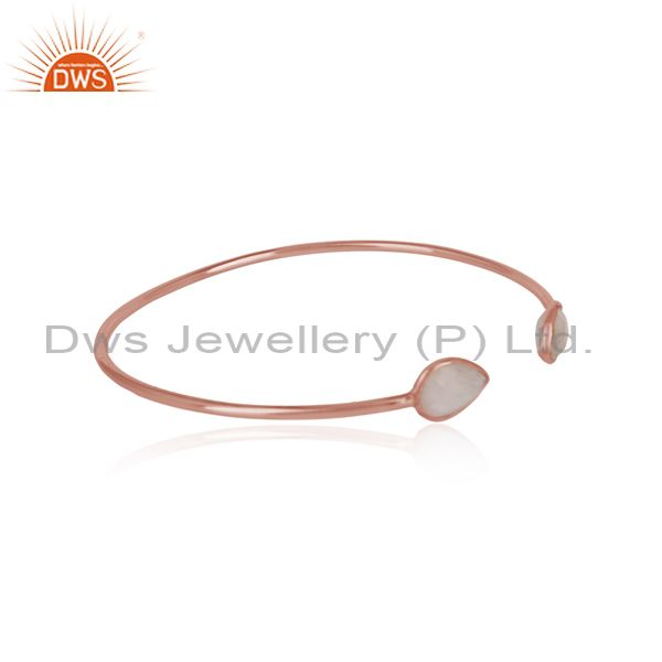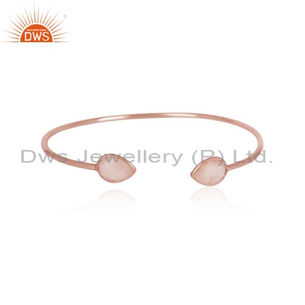 Designer Sleek Cuff In Rose Gold On Silver 925 And Rose Quartz